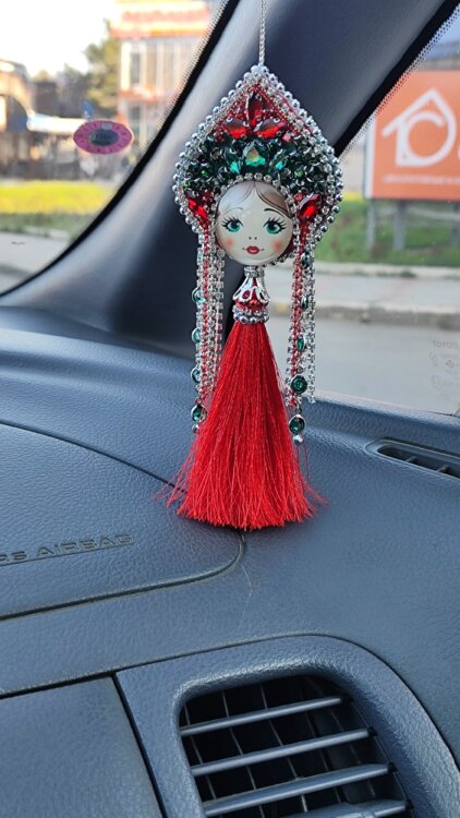 Подвеска в авто, с логотипом и матрёшка -это подарочный сувенир, изготовленный из бижутерного сплава стекла и натуральных камней. Крепится на переднее стекло авто, как элемент декора. Высота 16 (18)см. Изделие под заказ!