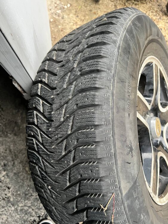 Состояние отличное — отъездили всего один сезон, без грыж и порезов. Диски ровные, не вареные, не катаные, без трещин. Резина с хорошим остатком протектора, еще спокойно послужит не один сезон.