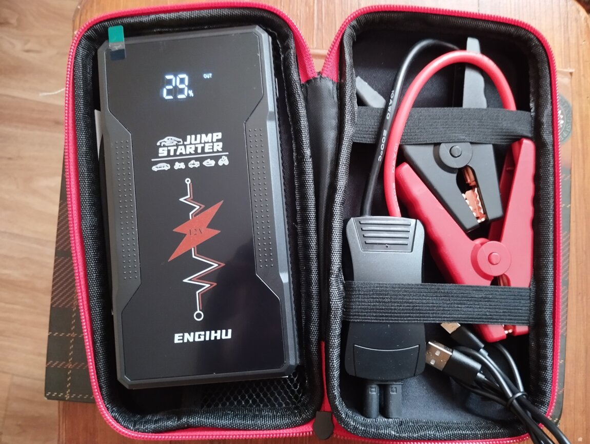 Пуско-зарядное устройство ENGIHU Jump Starter (12000 mAh) — это компактный портативный бустер для запуска двигателей 12В (бензин/дизель) с пиковым током до 1200А.
