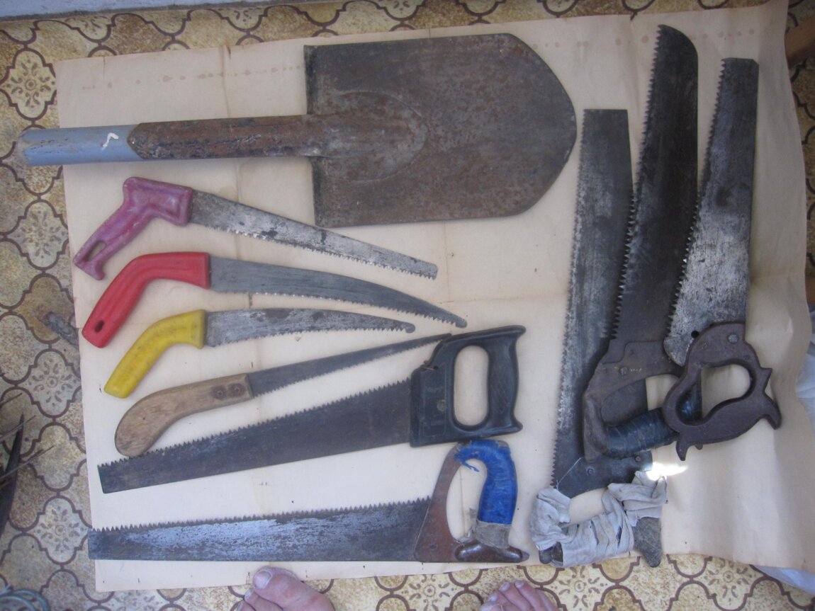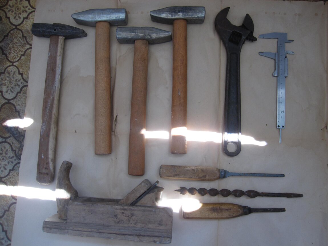 Топоры пила серп рыхлители тиски ножовки ножницы молотки точилки монтировки рубанок стамески топоры - большой зеленый лезвие 15 см -300 л с длинной ручкой 13 см 300 л светлая ручка 11 см два других 9 и 8 см с железной ручкой по 150 л саперная лопата нераскладная 100 лей тиски маленькие -200лей большие -400 лей новые кротоловки механическая и ультразвуковые по 100 лей монтировки и гвоздедеры по 100 лей решетка для чистки обуви 100л правила-150 см 80 лей молотки строительные по 50 лей гвозди сапожные куча - 50 л трос сантехника 200 л точилка маленькая -100 л большая -200 лей ножовки по металлу и по дереву по 100 л сучкорезы по 50 лей пила двуручная -500 лей ножницы по металлу по 100 лей рубанок 100 л сверло по дереву для бочек 50 лей ключ большой гаечный разводной ширина губ -38 мм - 100 лей шпагат за весь -100 лей рукавицы брезентовые 9 пар- 150 лей перчатки резиновые -100 лей дрели ручные по 100 лей рыхлители по 50 лей серп -100 лей на фото 10- комплект из 3 инструментов для скрутки проволоки на столбах -200 лей и скобель- нож для очистки коры с бревен -100 лей медная трубка скручена в круг 06 мм -3м -100 л корыто большое 81см- 200 лей поменьше 70 см -150 лей бочка фанерная для сыпучих материалов на 50 л -50