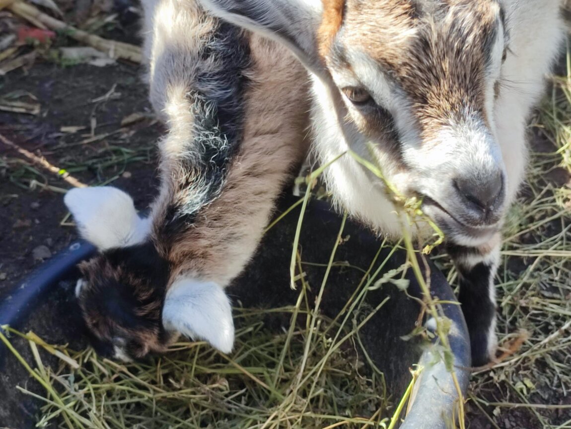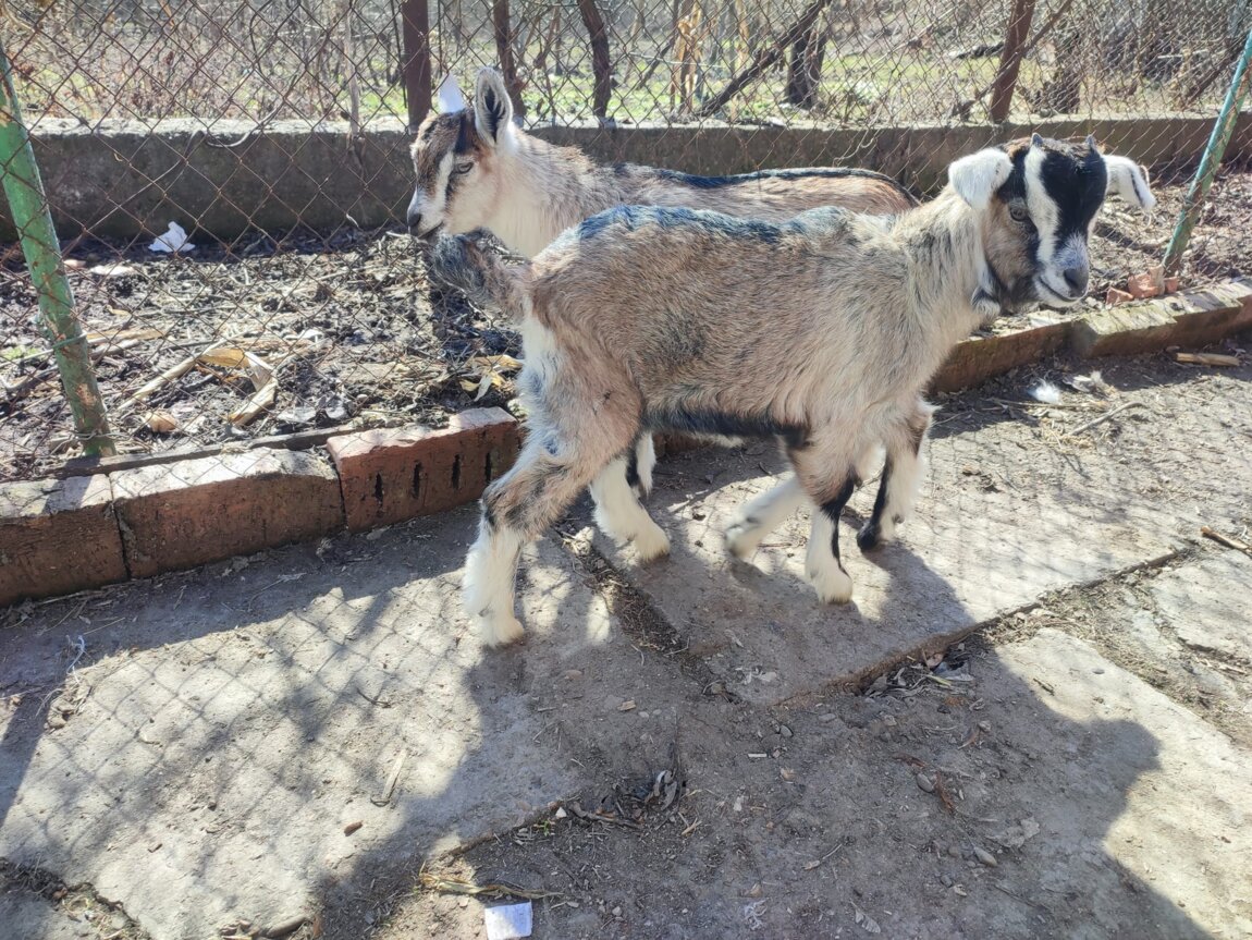 Продаются 2 девочки козлёнка, едят траву.