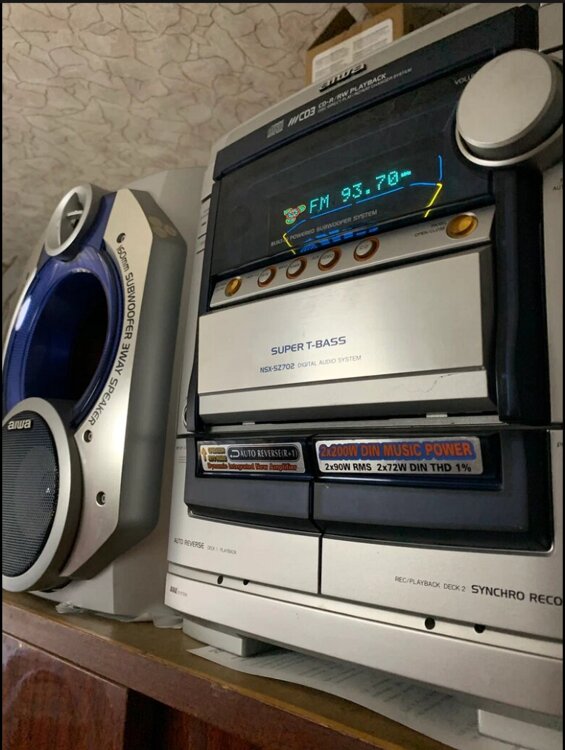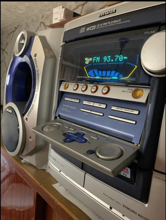 1). AIWA CX- NSZ702E7 с автоматическим выдвижным столиком пульта управления. Встроенный сабвуфер. RMS (среднеквадратичная мощность) - 2х90 Вт + 2Х72Вт. SUPER T-BASS. Состояние отличное. Пульт ДУ в комплекте. - 1199 руб.