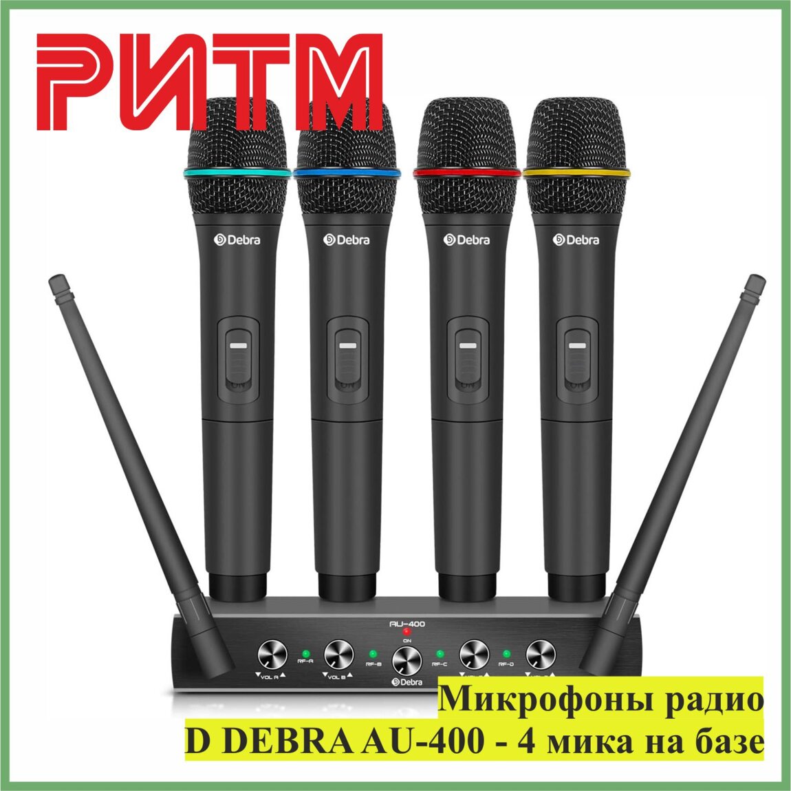 Радиомикрофоны - 4 штуки на одной базе. Подходит для церкви, небольшой сцены, дня рождения, свадьбы или семейного праздника, конференции, учебных классов, небольшого вечера караоке и т. д.