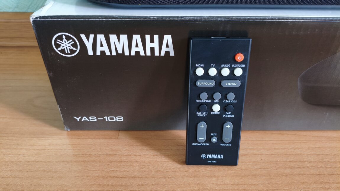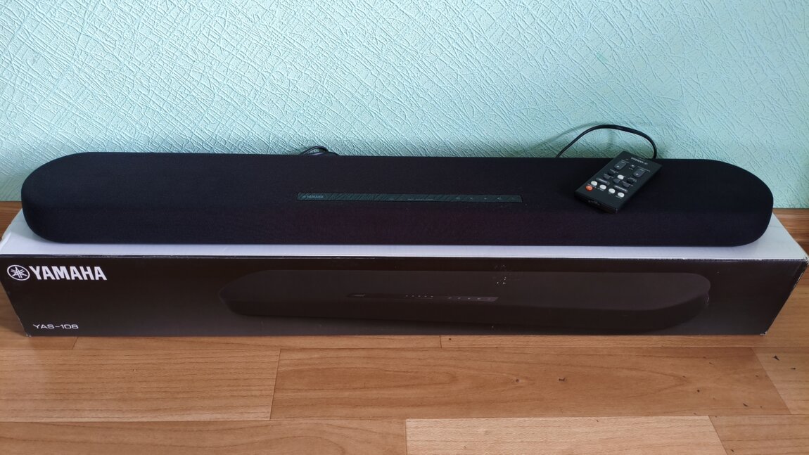 Yamaha YAS-108 — это компактный 2.1-канальный саундбар со встроенными сабвуферами (120 Вт общей мощности).