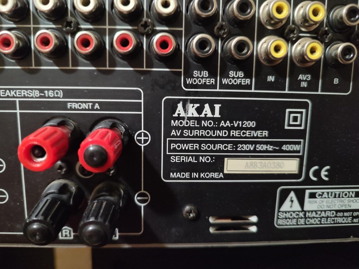 Усилитель-ресивер AKAI AA-V1200, мощность в режиме стерео 2х170 Вт (4 Ом), 2х130-150 Вт (8 ом), усилитель большой и тяжёлый, размеры: (440х150х360 мм), вес 11 кг, имеет выходы на два активных сабвуфера, может работать как усилитель или как ресивер, мощный и громкий аппарат, звучит чище и мощнее чем топовый усилитель Pioneer A-702 R, made in Korea.