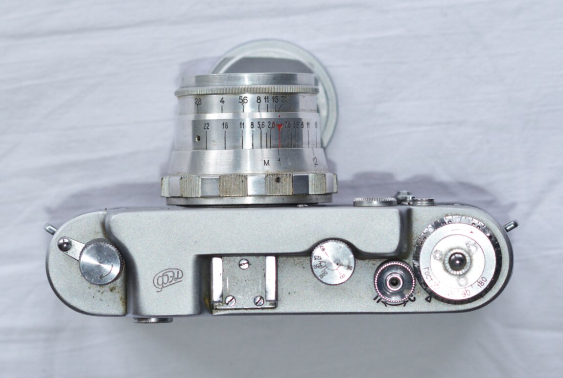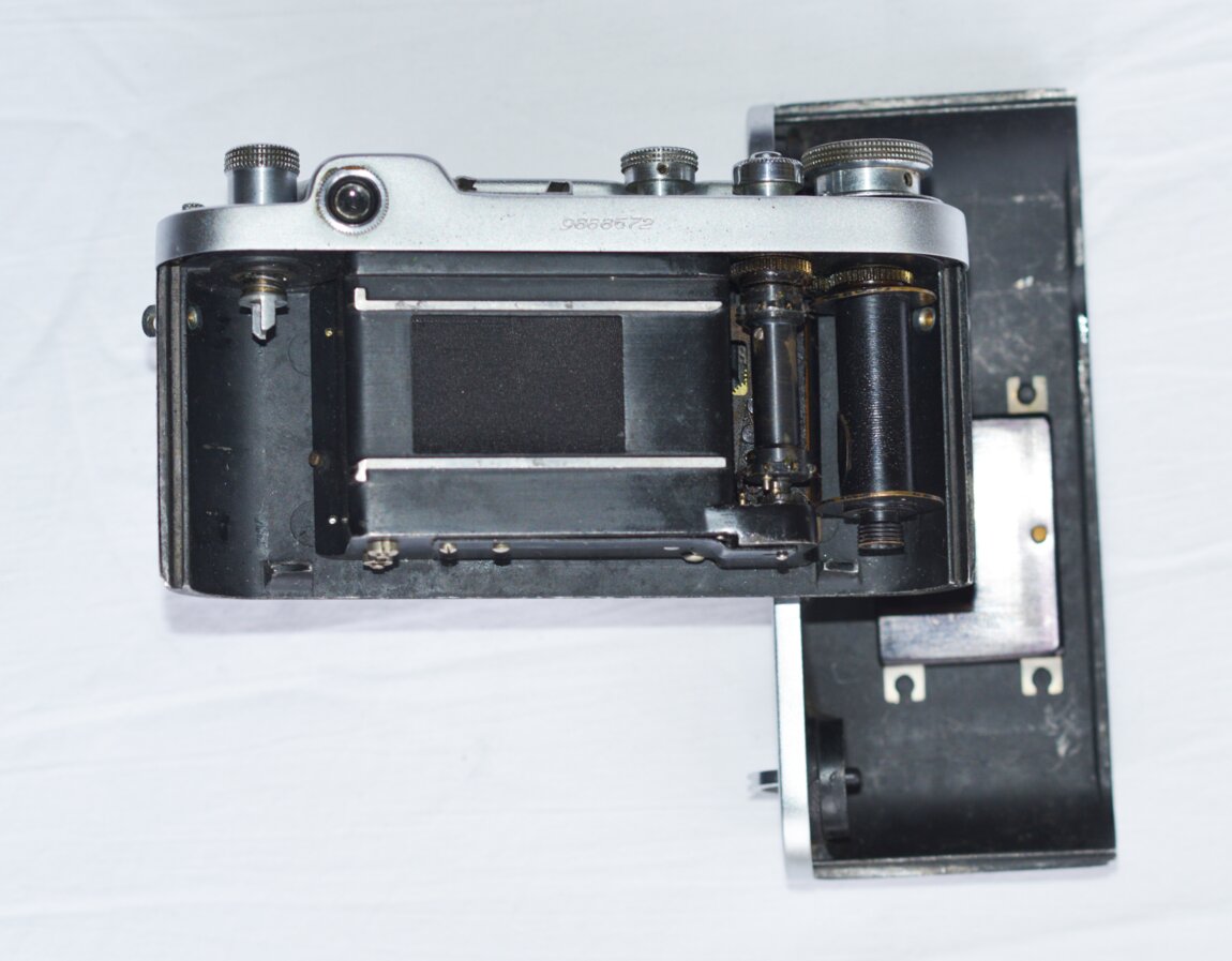 Загрузка пленки: Задняя крышка полностью снимается (в отличие от Leica или FED 1)