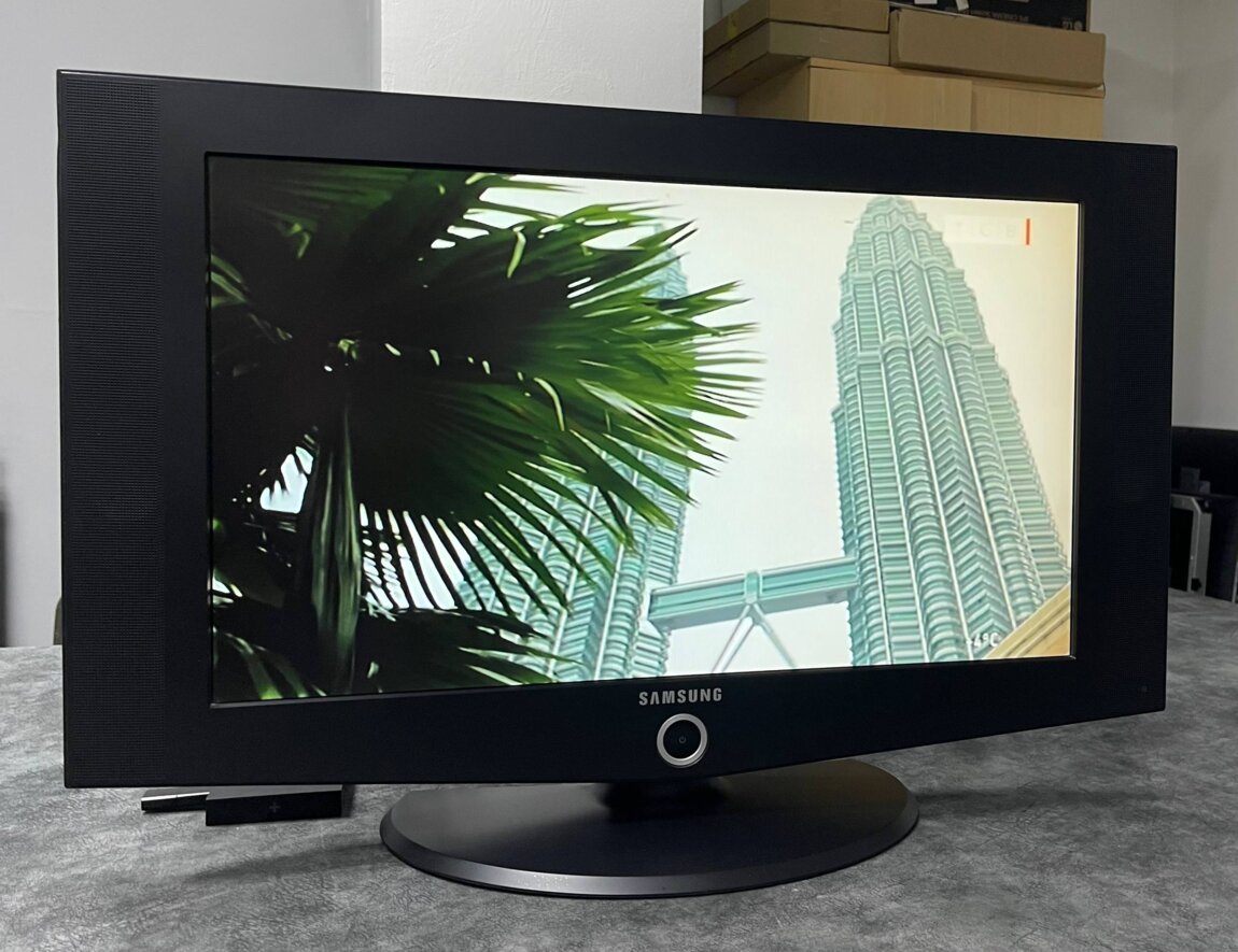 Надежный ЖК-телевизор с диагональю 27 дюймов, стереозвуком. Разрешение HD 1366x768. В комплекте пульт и кабель питания. Меню на русском языке, сборка - Словакия. Внешнее и техническое состояние идеальное. Возможности подключений на фото.
