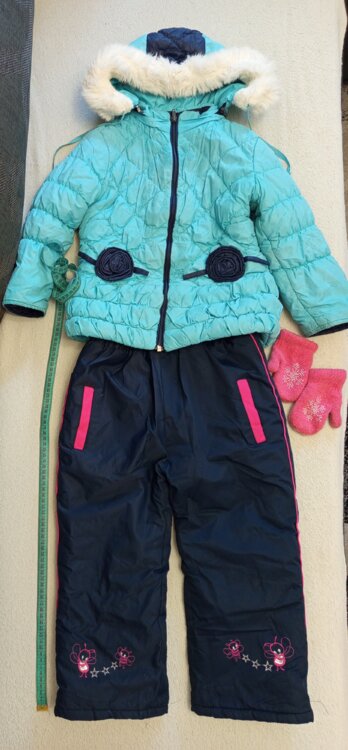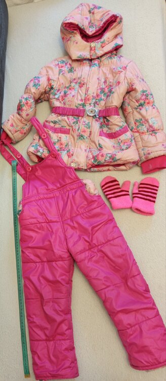 Продам розовый комбинезон с курткой и рукавицы 100 рублей. Голубая куртка, штаны и перчатки 100 рублей. комбинезон синий 100 рублей. Возраст 3-5 лет.