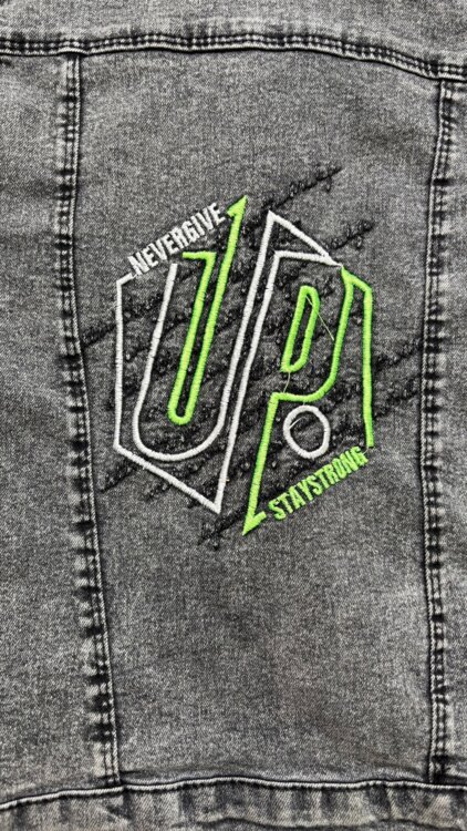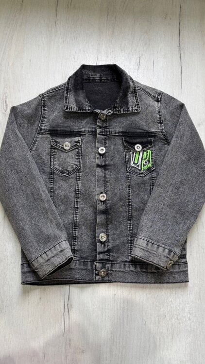 Качественная джинсовая куртка. Джинс серый с надписями.