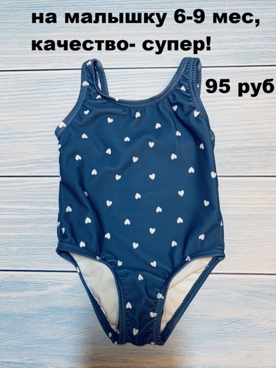 Новый купальник на малышку, фирма Cool Club, синий в белых сердечках, на рост 74 см (6-9 месяцев), Качество - супер! Цена - 95 руб.