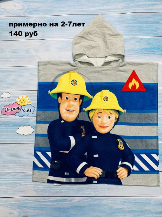 Новая махровая накидка примерно на 2-7 лет с Пожарным Сэмом, Цена - 140 руб.