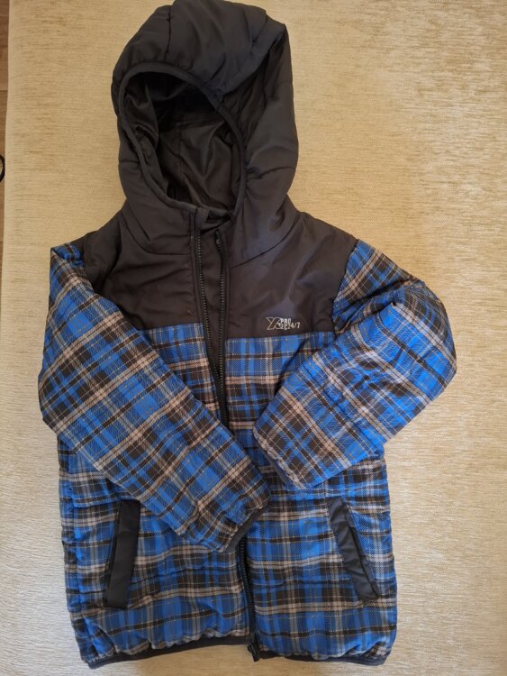 Одежда для мальчика. Демисезонная куртка рост 128-134 см б/у двухсторонняя 120 руб. в отличном состоянии, спортивный костюм 50 руб., батники по 25 руб.