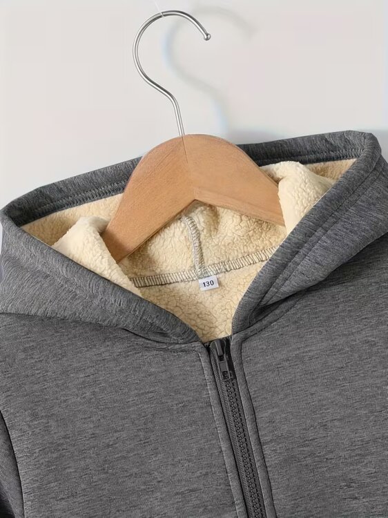 Мальчиковая куртка с капюшоном – Теплая куртка на молнии для мальчиков, однотонная повседневная верхняя одежда, подходит для осени и зимы, стильный дизайн, удобный фасон, мягкая ткань, верхняя одежда, идеально для школы и игр, белая подкладка