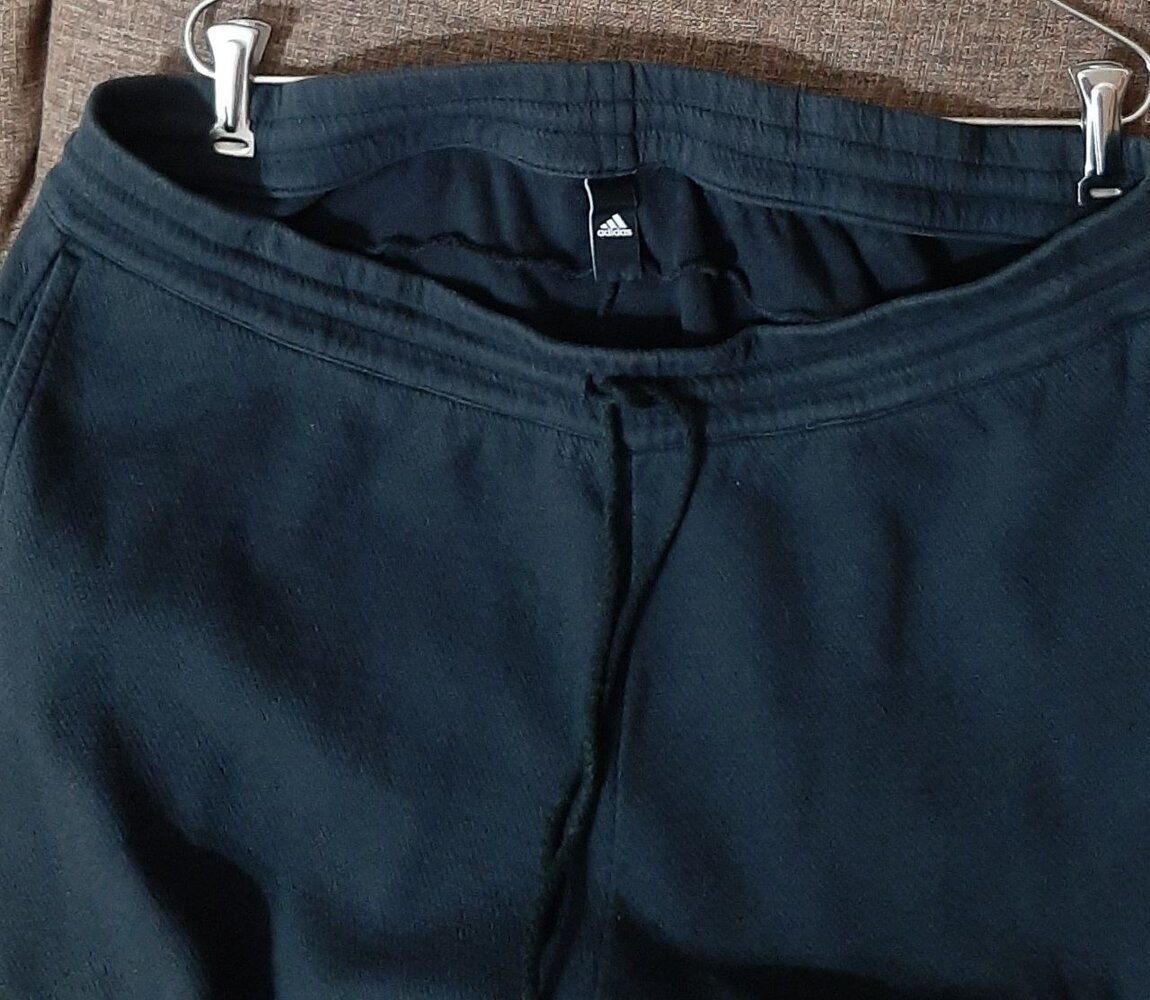 - Спортивные брюки (штаны) спортивные штаны Adidas большого размера: 60- 64, а возможно и 66. По бокам карманы. Внизу на штанинах молнии. В поясе 108 см в нерастянутом виде (регулируется шнуром). Длина по боковому шву 101 см без пояса (с поясом 106 см). Плотный качественный трикотаж. Б/у немного, состояние хорошее. Цена 50 руб.