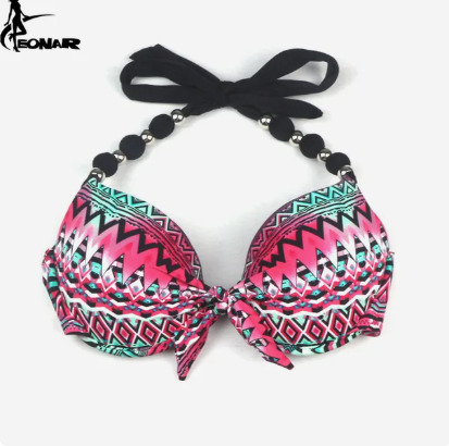 Верх как на снимке, сзади завязывается. Пуш-ап, вкладыши можно вынуть.