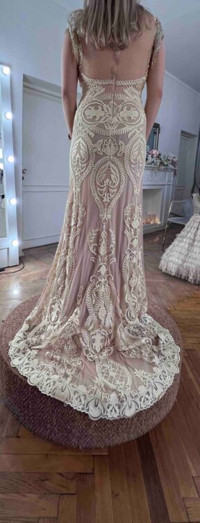 Продам вечернее платье со шлейфом цвета нюдовое золото. Платье одето было один раз