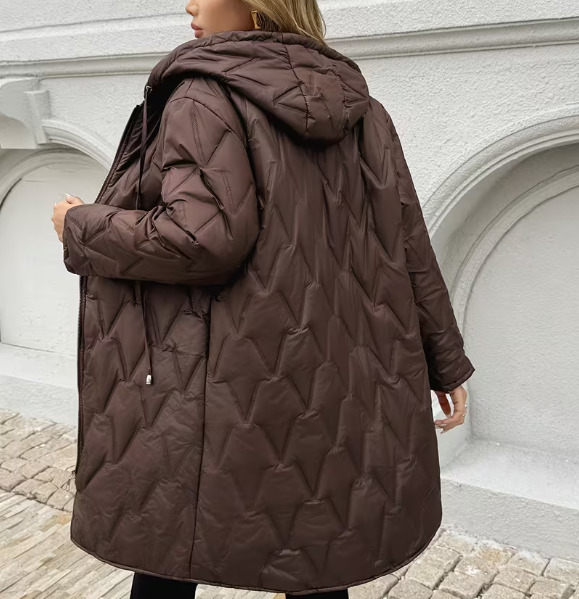 Женская куртка средней длины, свободного кроя с капюшоном, с кантованной стеганой отделкой, идеально подходит для повседневного ношения.