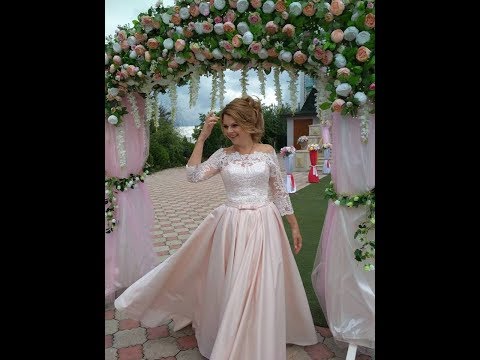 Красивое, нежное свадебное платье цвета пудры - со шлейфом.