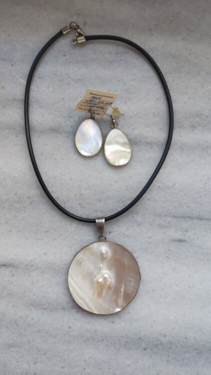 комплект кулон и серьги натур. перламутр цена 150,0