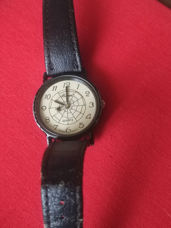 Water Resistant Корпус чёрного цвета, на циферблате паук, ремешок из натуральной кожи, задняя крышка из стали Не на ходу. Дешево!