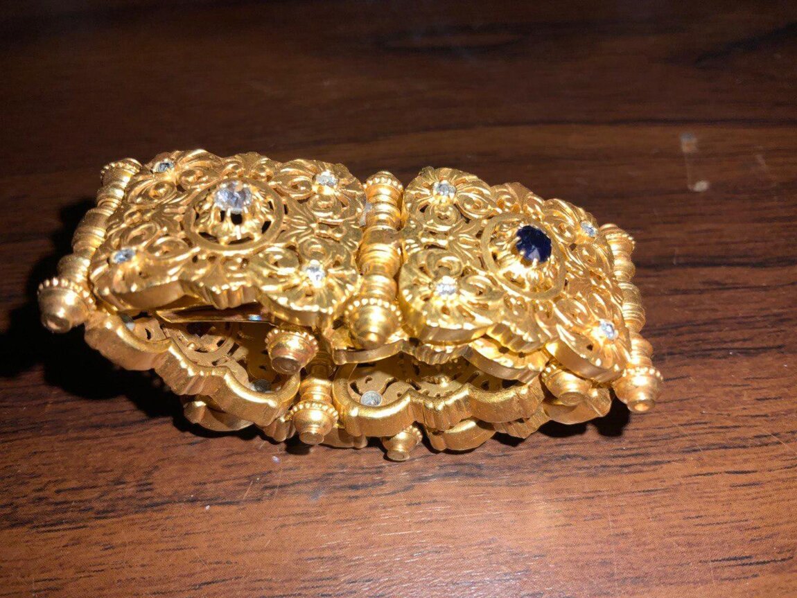 Антикварный золотой браслет 21K (875 проба) с бриллиантами, рубинами и сапфирами. Ручная работа.