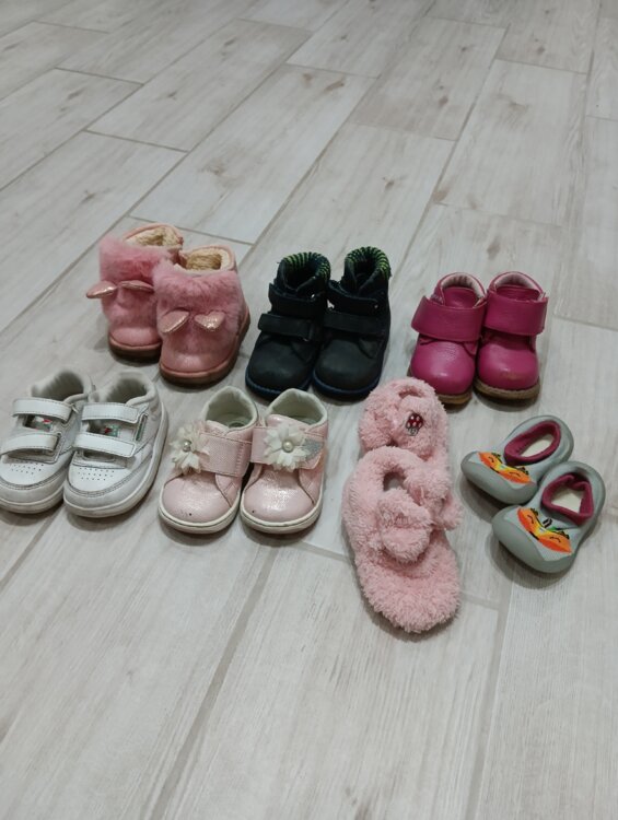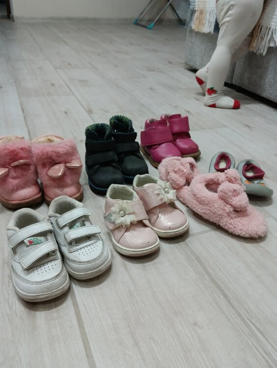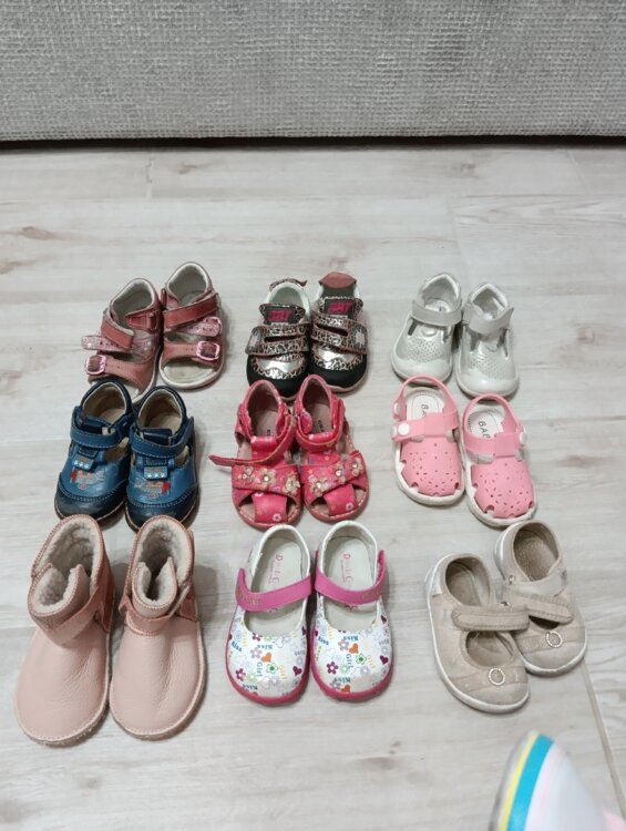 Фото 4-9 - 19 размер: кроссовки, туфельки несколько видов, сандалии, теплые сапожки на овчине.
