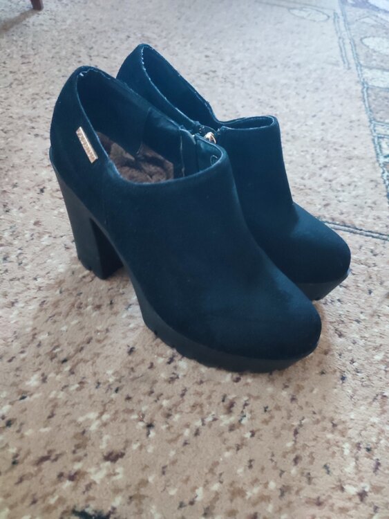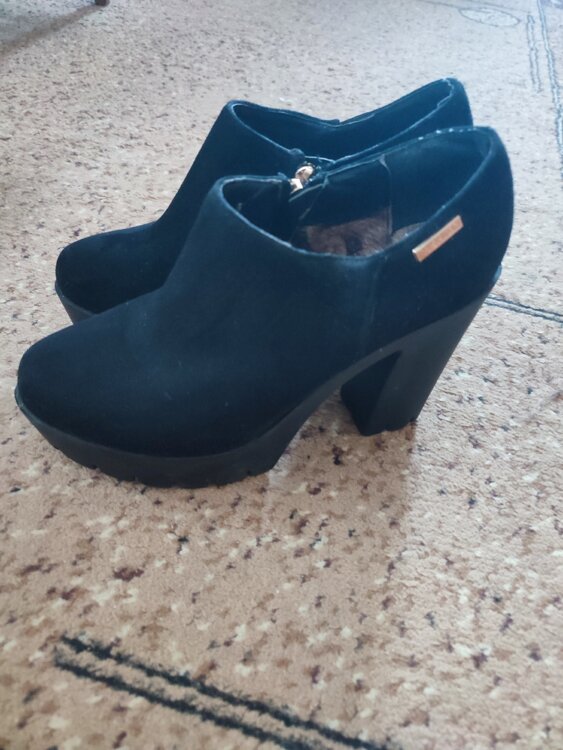 Ботильоны на толстом каблуке и платформе, эко замша