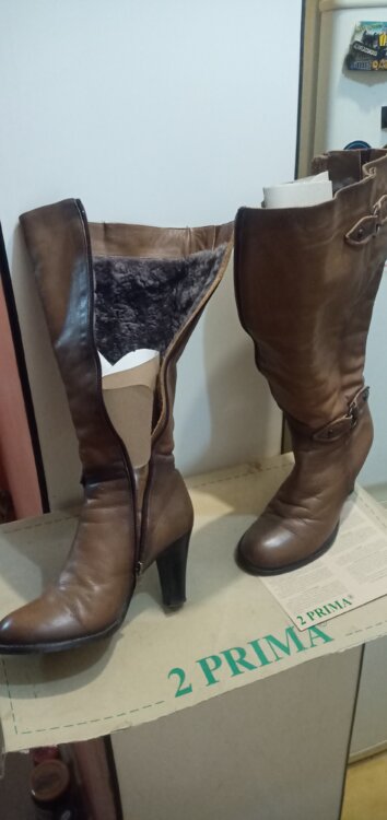 Продам б/у сапоги 38р-р, коричневые, цигейка кожа натуральная.