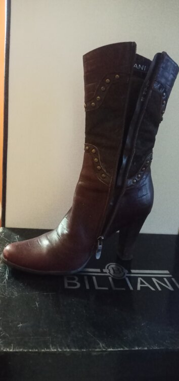 Б/у сапоги 38р-р кожа, каблук высота--8см.