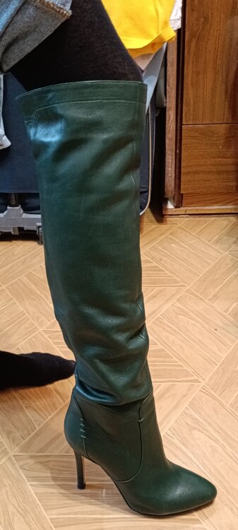 Зелёные сапоги на каблуке - 500р