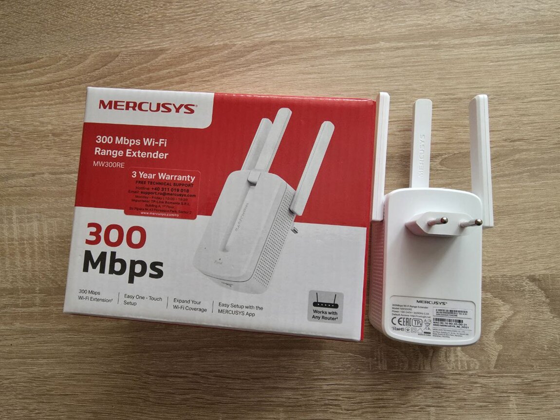 Продается Усилитель беспроводного сигнала Mercusys (MW300RE) 2,4ГГц, 300Мбит/с, 20dBm, 2 внешние антенны, 802.11b/g/n, white