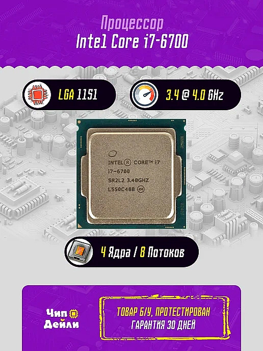 Продам с гарантией и проверкой процессор с охлаждением для 1151 сокета Intel i7-6700 4 ядра и 8 потоков с турбо бустом до 4.00 Ггц, с поддержкой DDR3 и DDR4 памяти, а также встроенной графикой Intel® HD Graphics 530.