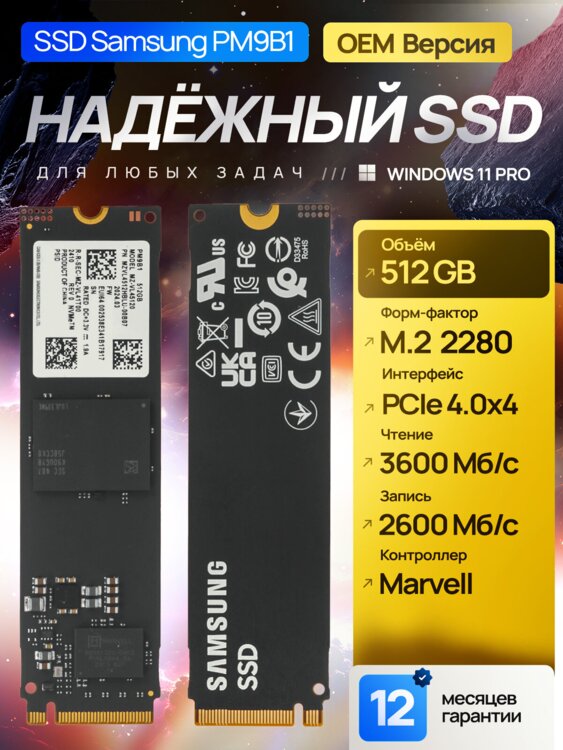 Продам с гарантией и возможностью рассрочки по картам Клевер (АПБ, Сбер и Эксим) быстрый Nvme накопитель от самой надежной фирмы Samsung со следующими характеристиками.