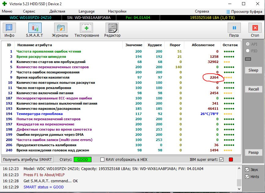 Диск WDC WD10SPZX-24Z10 с минимальной наработкой для долговременного хранения данных.