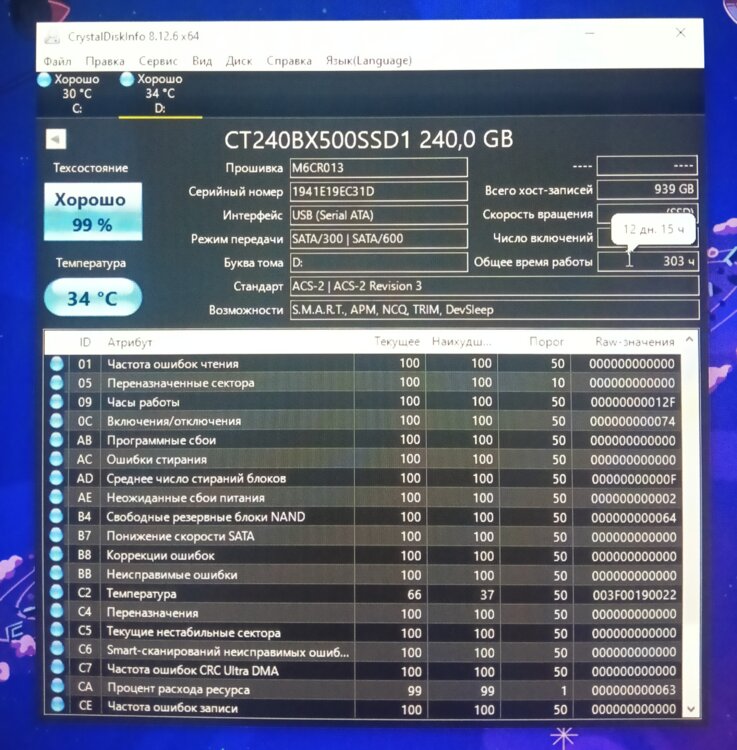 240GB SSD 2.5 Crucial BX500' (CT240BX500SSD1)" Read 540MB/s, SATA III 6.0 Gbps, 3D NAND TLC.