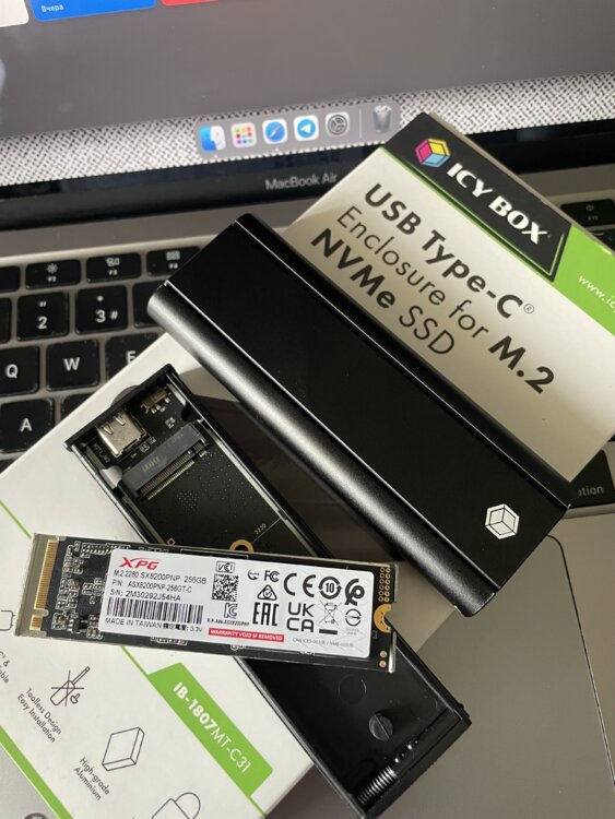 Продаю внешний SSD: ICE BOX + SSD M. 2 ADATA 256GB.