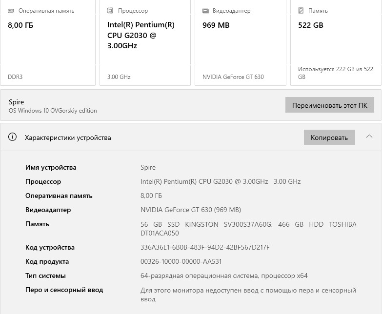 Процессор - Pentium(R) CPU G2030 @ 2 x 3.00 Ghz,