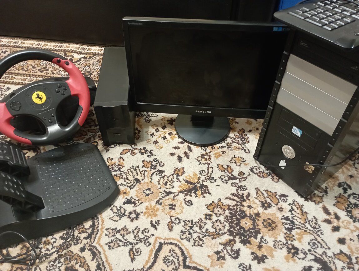 Персональный компьютер: жёсткий диск- 300 Гб., оперативная память - 3 Гб., видеокарта - 256 мб., монитор, клавиатура, колонки, блок бесперебойного питания, игровой руль и педали. Всё б/у в рабочем состоянии.