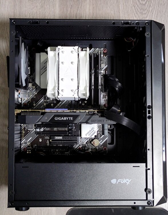 [Корпус] - FURY продуваемый 4 вертушки RGB (боковая крышка закалённое стекло)