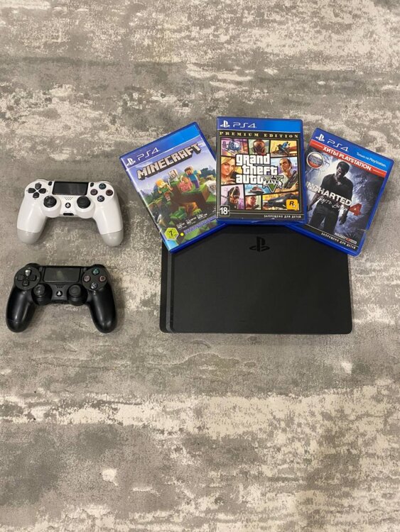 Продам PS4 Slim, с аккаунтом PS network. В комплекте 2 джойстика, 1 терабайт памяти, игры на дисках- GTA 5, Minecraft, UNCHARTED 4. Игры на аккаунте- Mortal combat X, Neet for cpeed HEAT, War Thunder Fortnite. Все кабеля в комплекте. Не большой торг уместен.