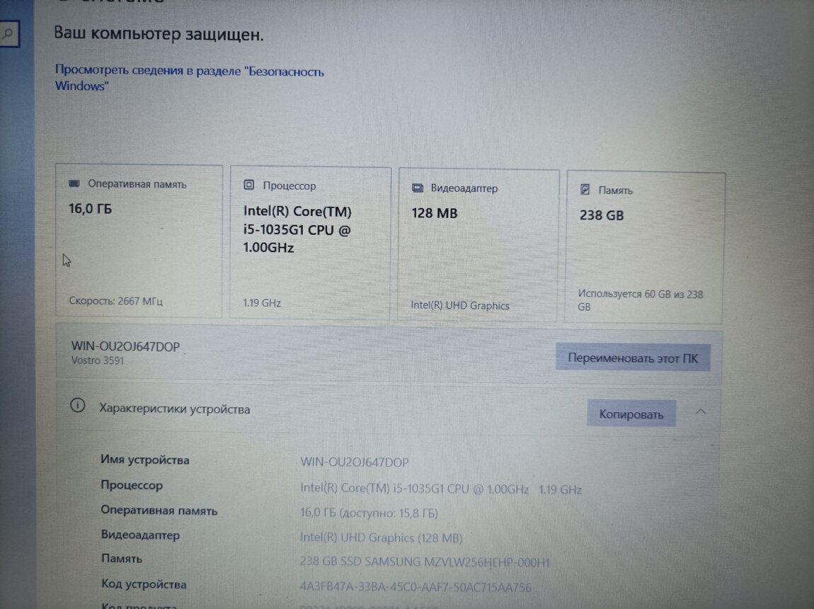 Установлен М. 2 NVMe-256+hdd-500Gb!