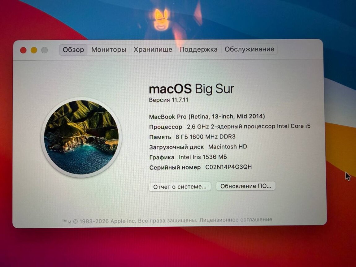 Установлена macOS Big Sur 11.7.11 (последняя официальная версия).