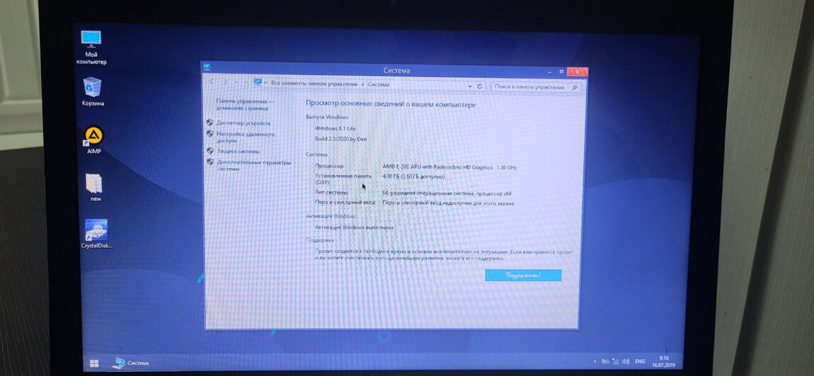 Тип видеокартыинтегрированная