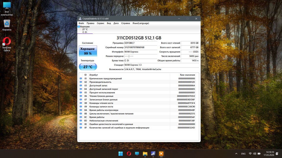 • Накопитель: 512 ГБ SSD NVMe (Samsung).