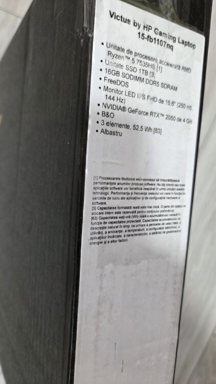 Игровой ноутбук HP Victus 15-fb1107nq с процессором AMD Ryzen™ 5 7535HS, 15,6-дюймовым Full HD IPS-экраном, частотой обновления 144 Гц, 16 ГБ DRR5, SSD-накопителем 1 ТБ, видеокартой NVIDIA® GeForce RTX™ 2050 4 ГБ, в алюминиевом корпусе и цветом Performance Blue.