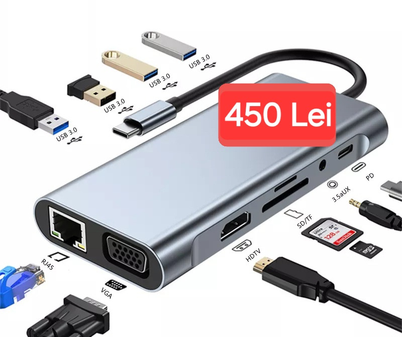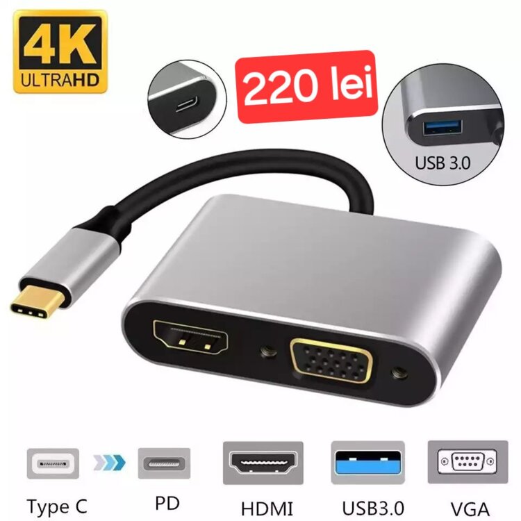 ** Adapter TYPE С - 4 порта Hdmi +Usb + usb type C+ vga- 220 лей