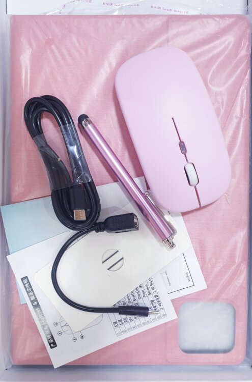 Продам новый планшет CR 10.1 дюймов Android 13 2-в-1, Deca Core MTK CPU, 512 ГБ памяти, 12 ГБ (4 ГБ + 8 ГБ расширение), в комплекте розовая клавиатура, мышь, защитный чехол розового цвета, стилус.