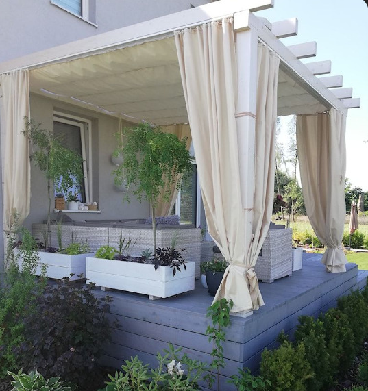 пергола-патио / терраса часто используется для создания уютного пространства на открытом воздухе, предоставляя комфортное место для встреч и отдыха.