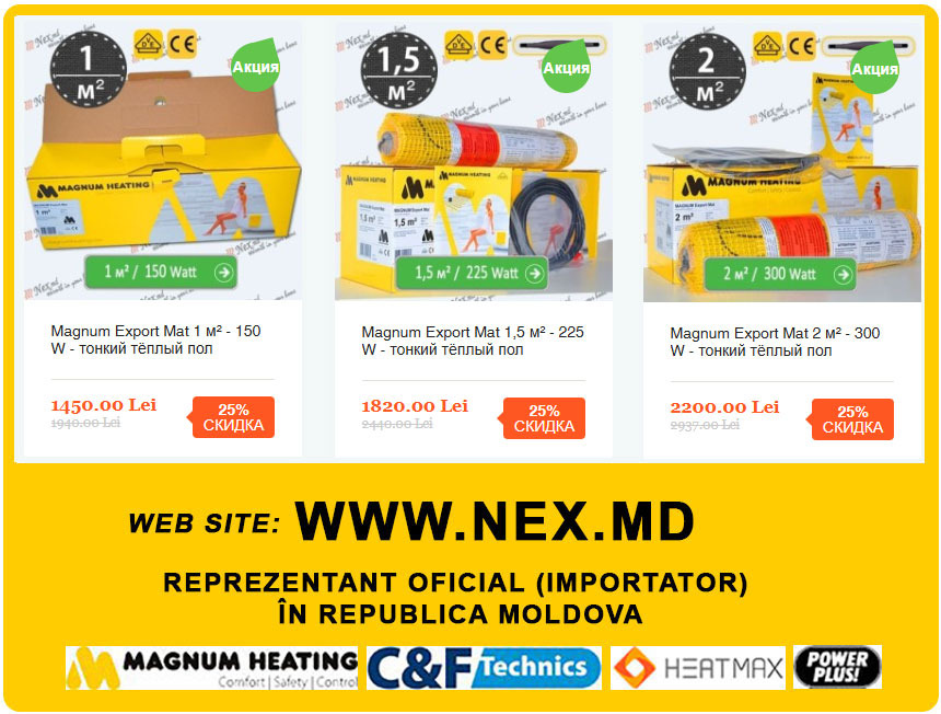 У нас хорошие новости: скидки! Теплый пол в плиточный клей (без стяжки) и терморегуляторы у официального импортера вы можете приобрести с Скидками до -45%. Нагревательный мат производство "Magnum Heating " - Нидерланды. Большой выбор терморегуляторов от механических до WiFi управления.
