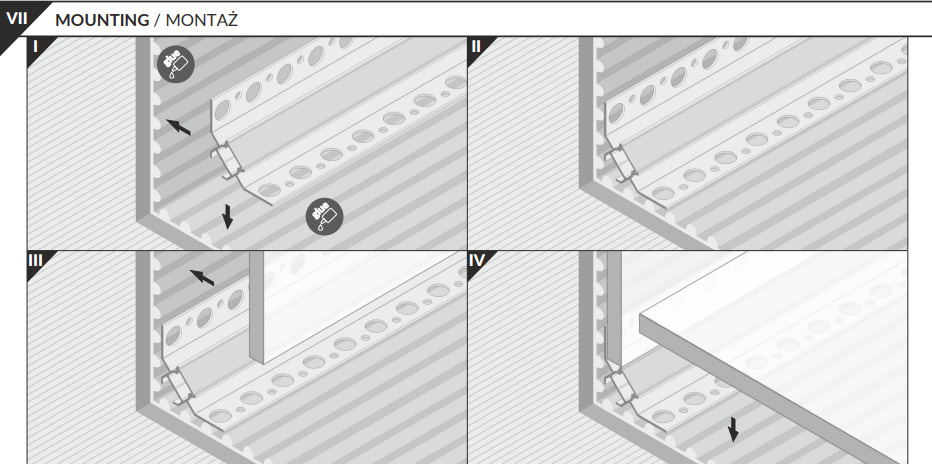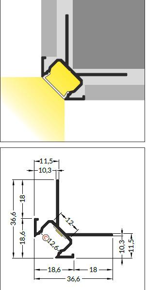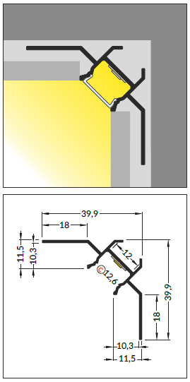 С применением данного профиля ранее невзрачные и малозаметные углы способны заиграть световыми эффектами, подсвеченные любым цветовым фоном при помощи цветной (RGB) или монохромной светодиодной лентой.